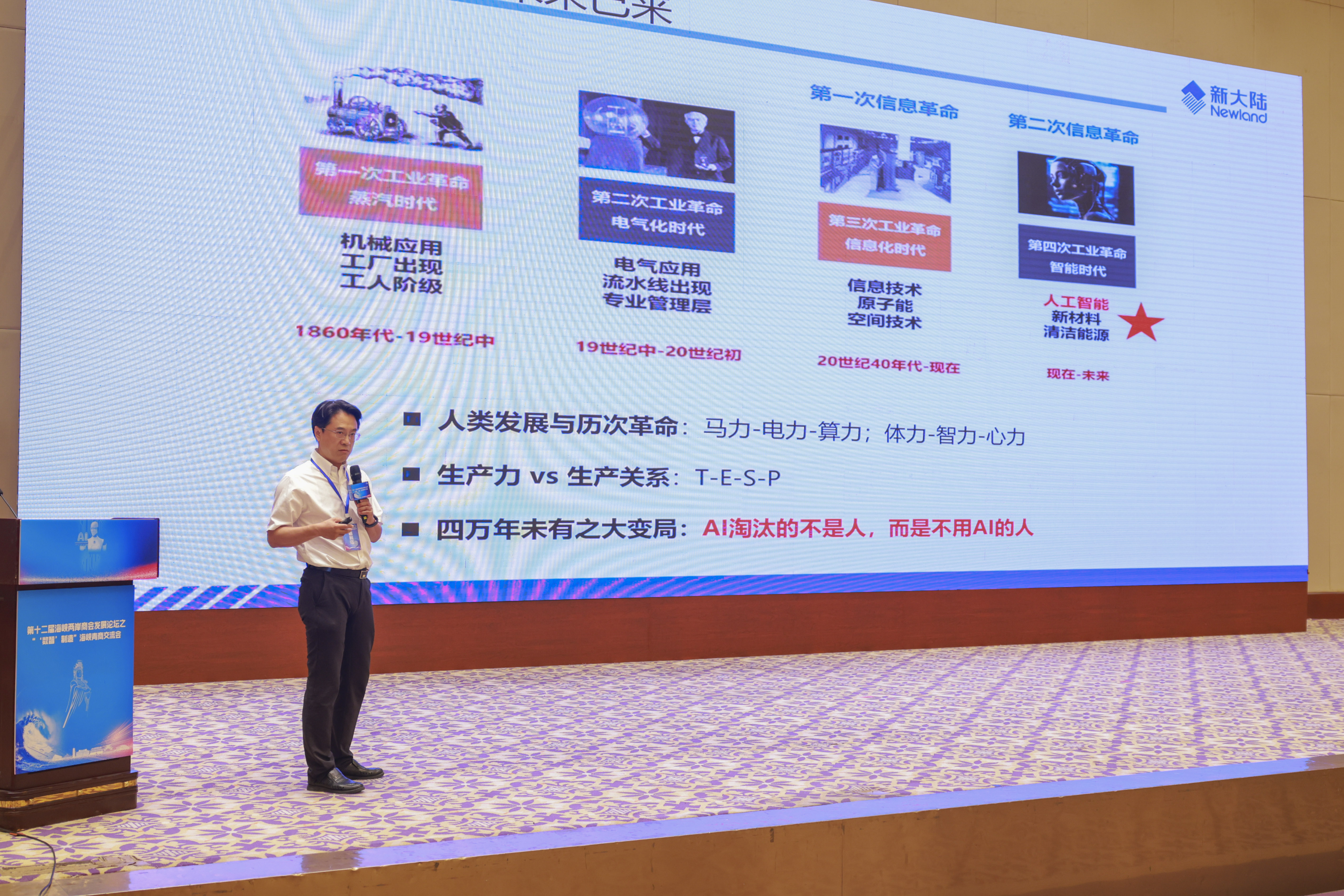 在主旨演講環節,四位行業專家分別圍繞人工智能、大數據、低空經濟和傳統產業數字化轉型等議題進行深度分享。新大陸科技集團研究院院長林林重點介紹了新大陸堅持自主創新,積極擁抱AI,展示了企業在全方位賦能線下商業場景打造和制造業轉型升級的實踐成果。