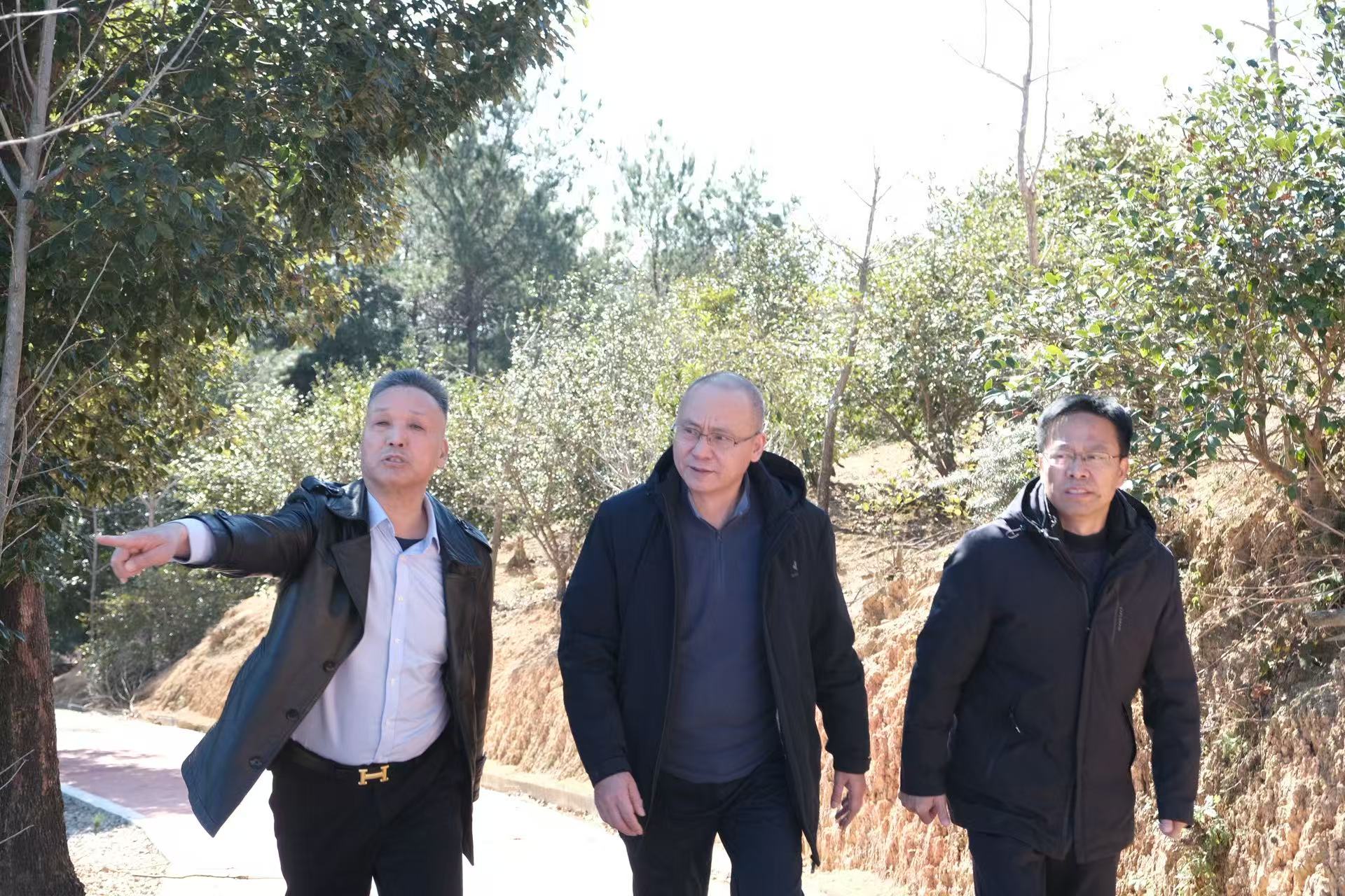 ? ? ? 在盧玉勝代表和湯炎燈書記的陪同下,大家深入西安村的田間地頭與養(yǎng)殖基地,實地察看鄉(xiāng)村振興的蓬勃景象。一行人首先走訪了連綿的銀杏林,金色褪去后枝干依然挺拔,孕育著生態(tài)與旅游融合發(fā)展的潛力;隨后步入油茶基地,滿山油茶綠意盎然,已成為村民增收的“綠色銀行”。