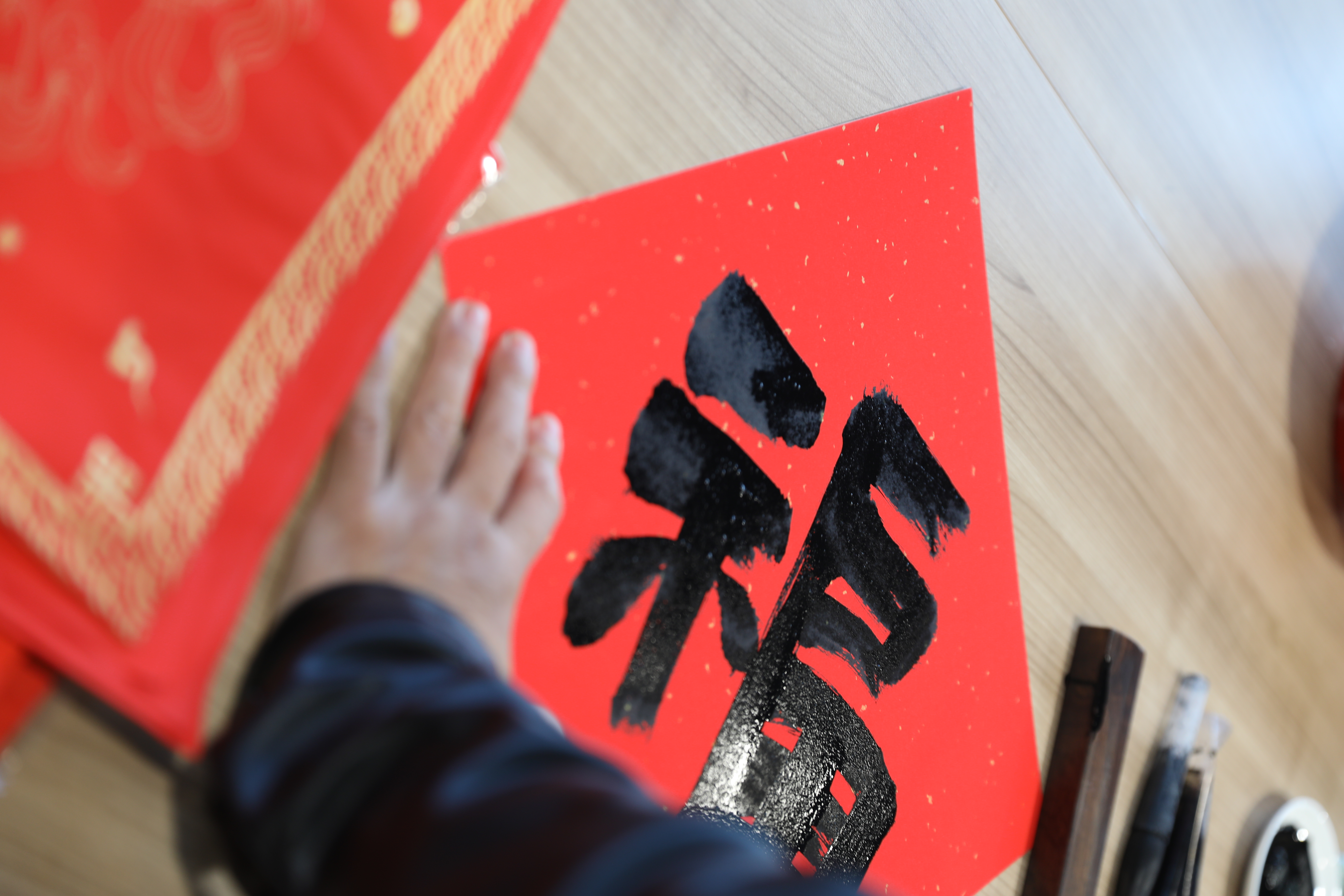 本次活動邀請了馬江畫院的9位書法家親臨現(xiàn)場,他們以筆為媒,以墨為禮,為160余名熱情參與的員工書寫春聯(lián)280余幅。活動現(xiàn)場,書法家們揮毫潑墨,筆鋒流轉間,一幅幅寓意吉祥的春聯(lián)躍然紙上,對仗工整,將對事業(yè)順遂、家庭美滿的期許融入其中;一個個飽含祝福的“福”字圓潤飽滿,盡顯書法藝術的韻味,傳遞著濃濃的年味。